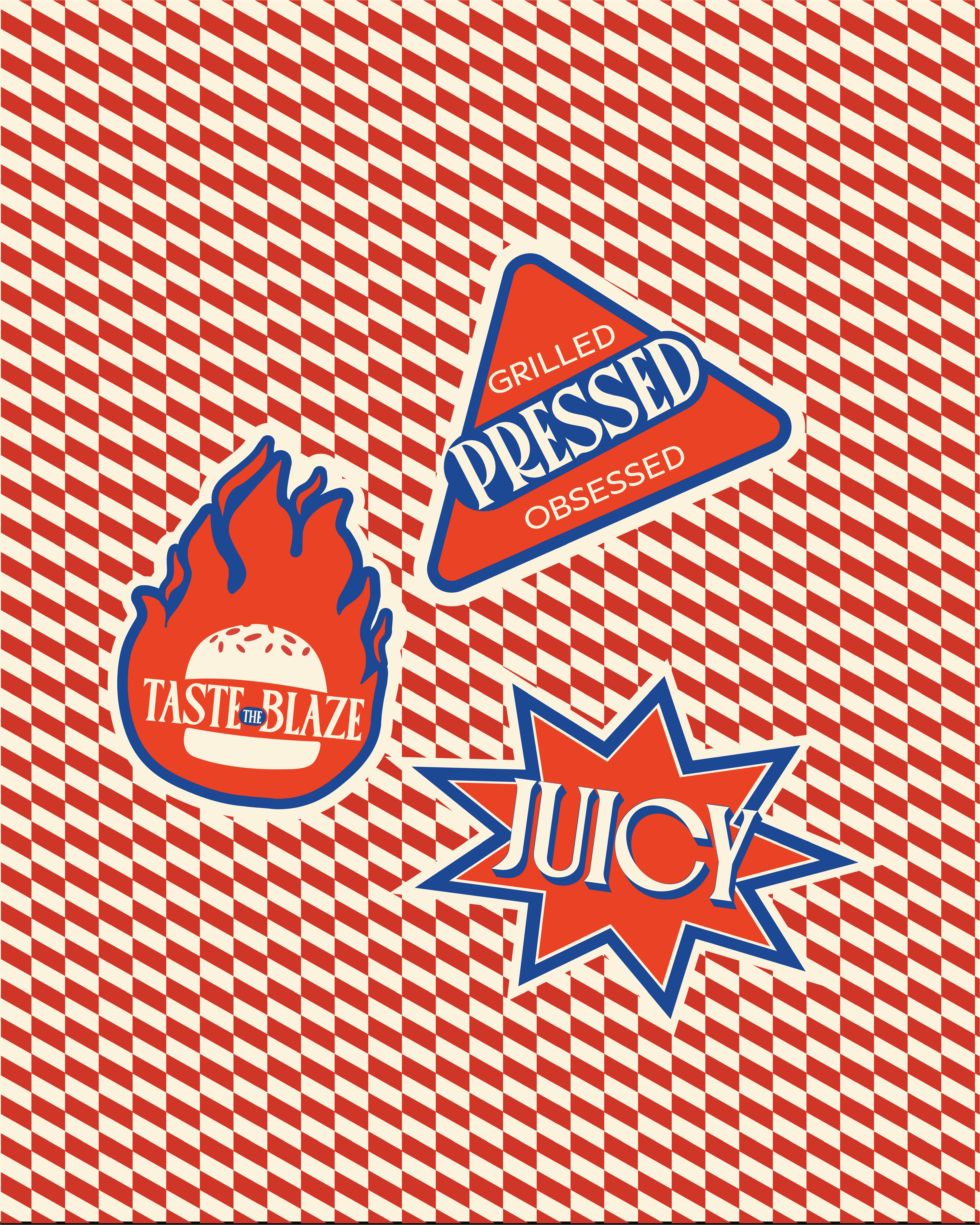 A vibrant, high-impact colour palette runs through the branding, with repeating patterns, and punchy layouts building a dynamic fast-food energy. It draws from classic American retro-diner cues, re-imagined with a modern, minimal twist - nostalgic, and unmistakably true to the brand’s smashed-burger attitude.