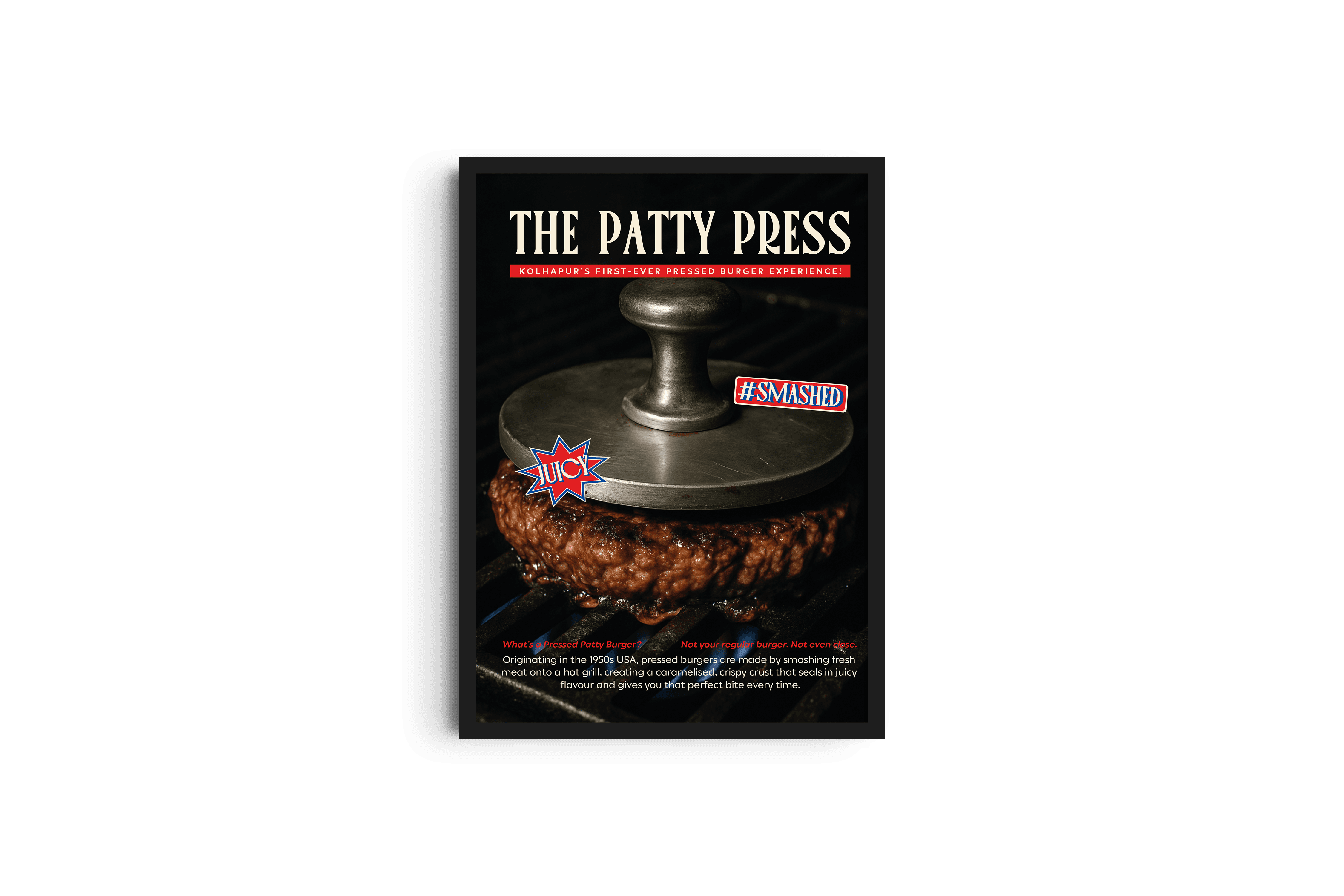 The Patty Press is Kolhapur’s first-ever smashed patty burger brand - a bold new concept bringing fresh energy to the city’s food scene. It introduces a fresh, modern approach to burgers, rooted in the craft of smashing patties hot, fast, and flavour-first