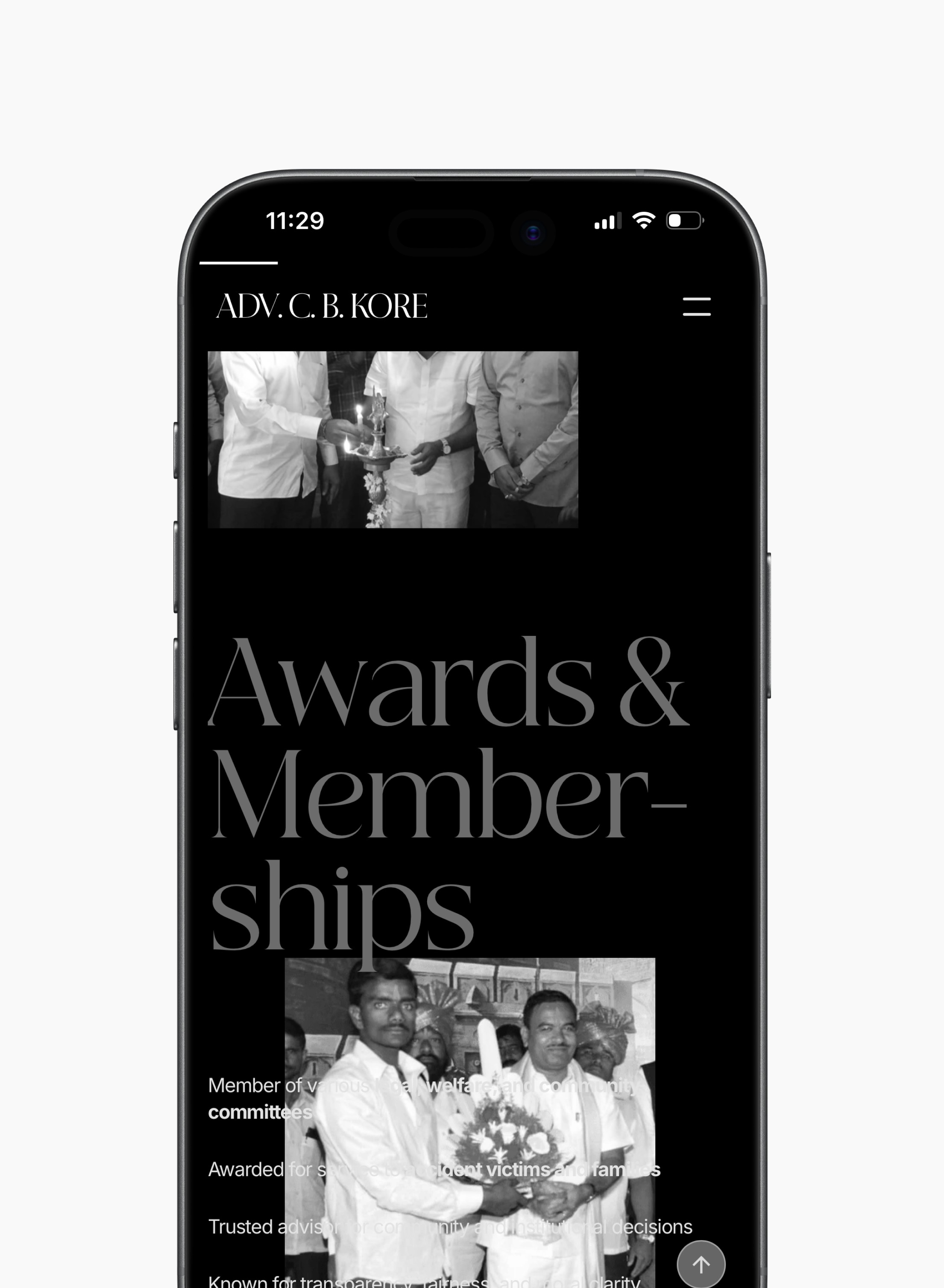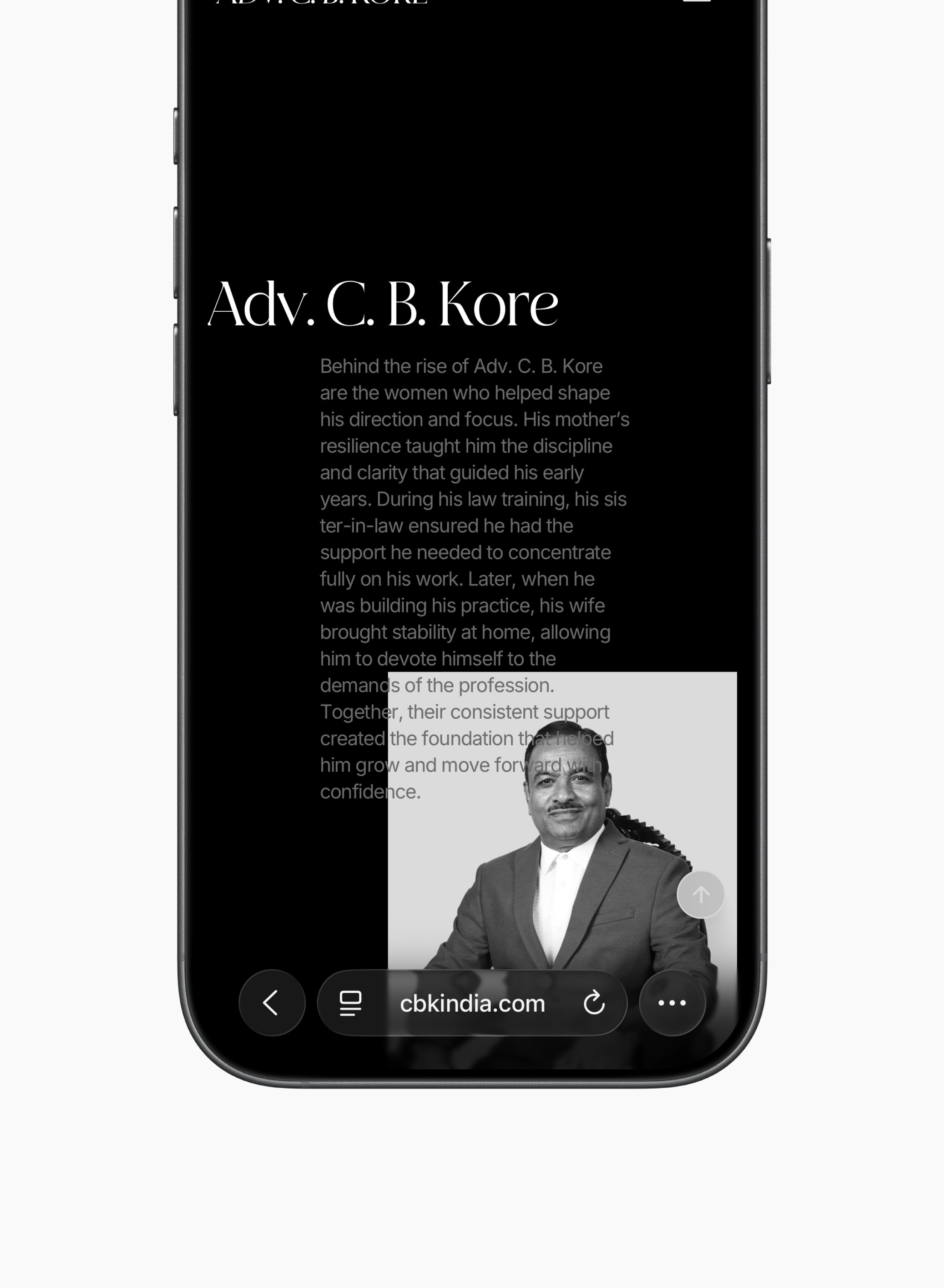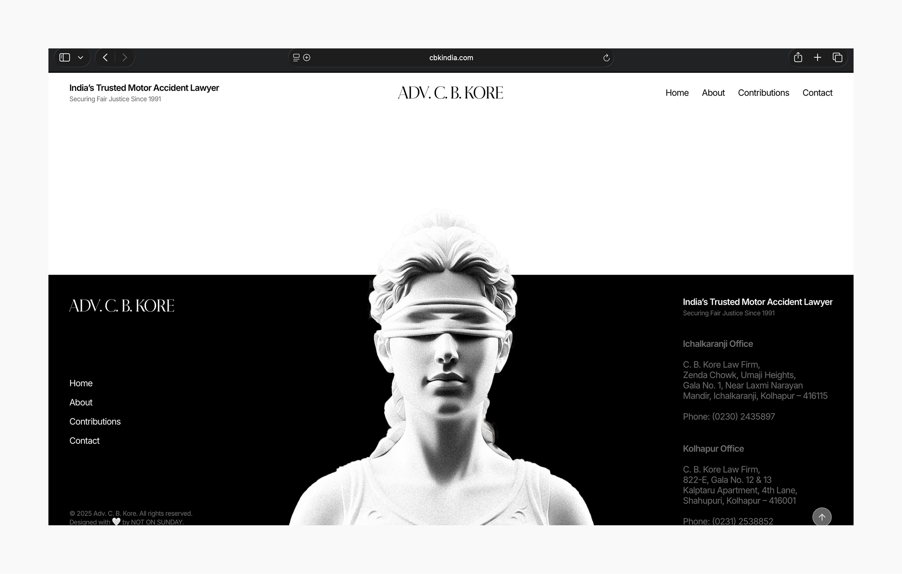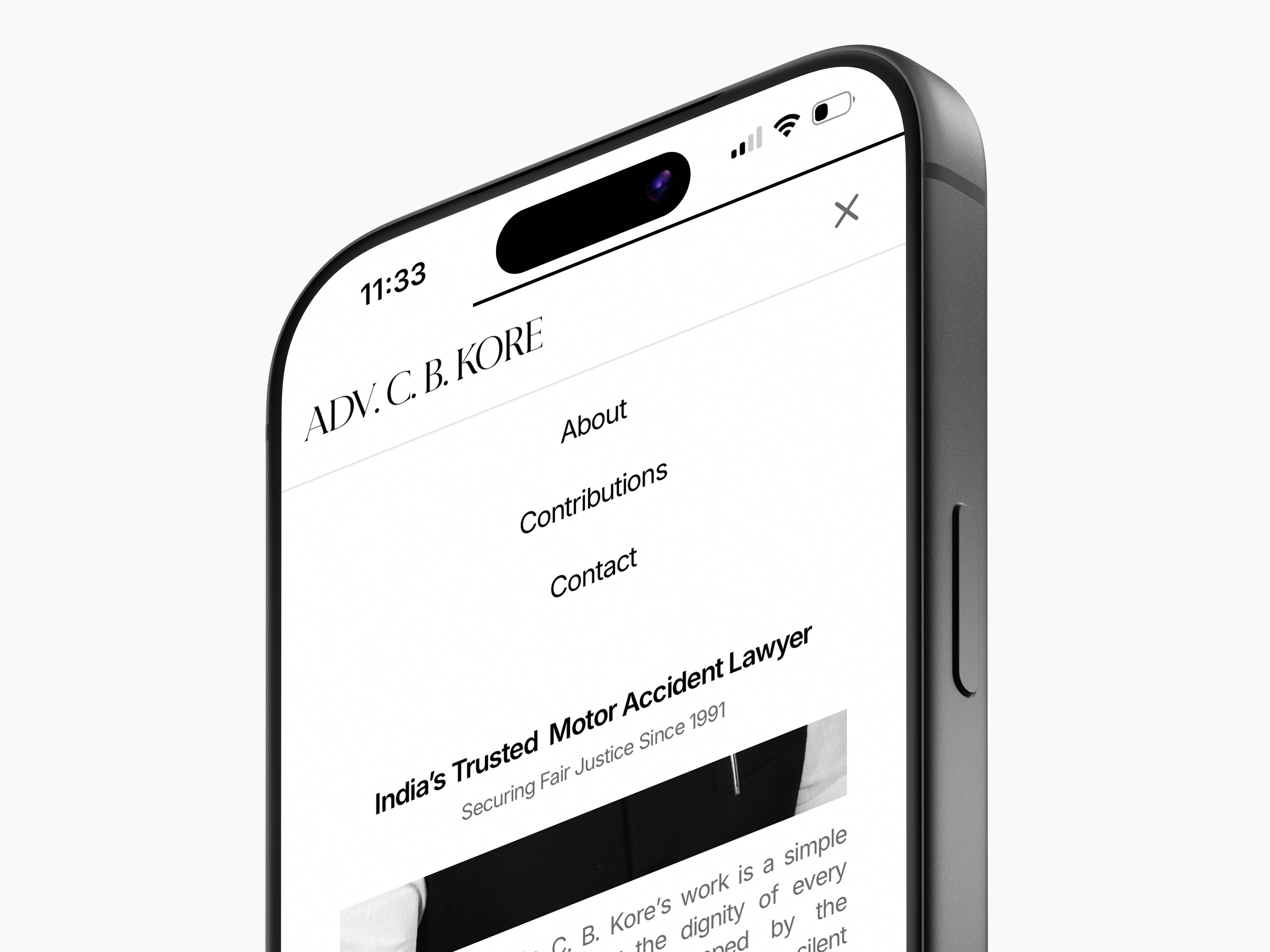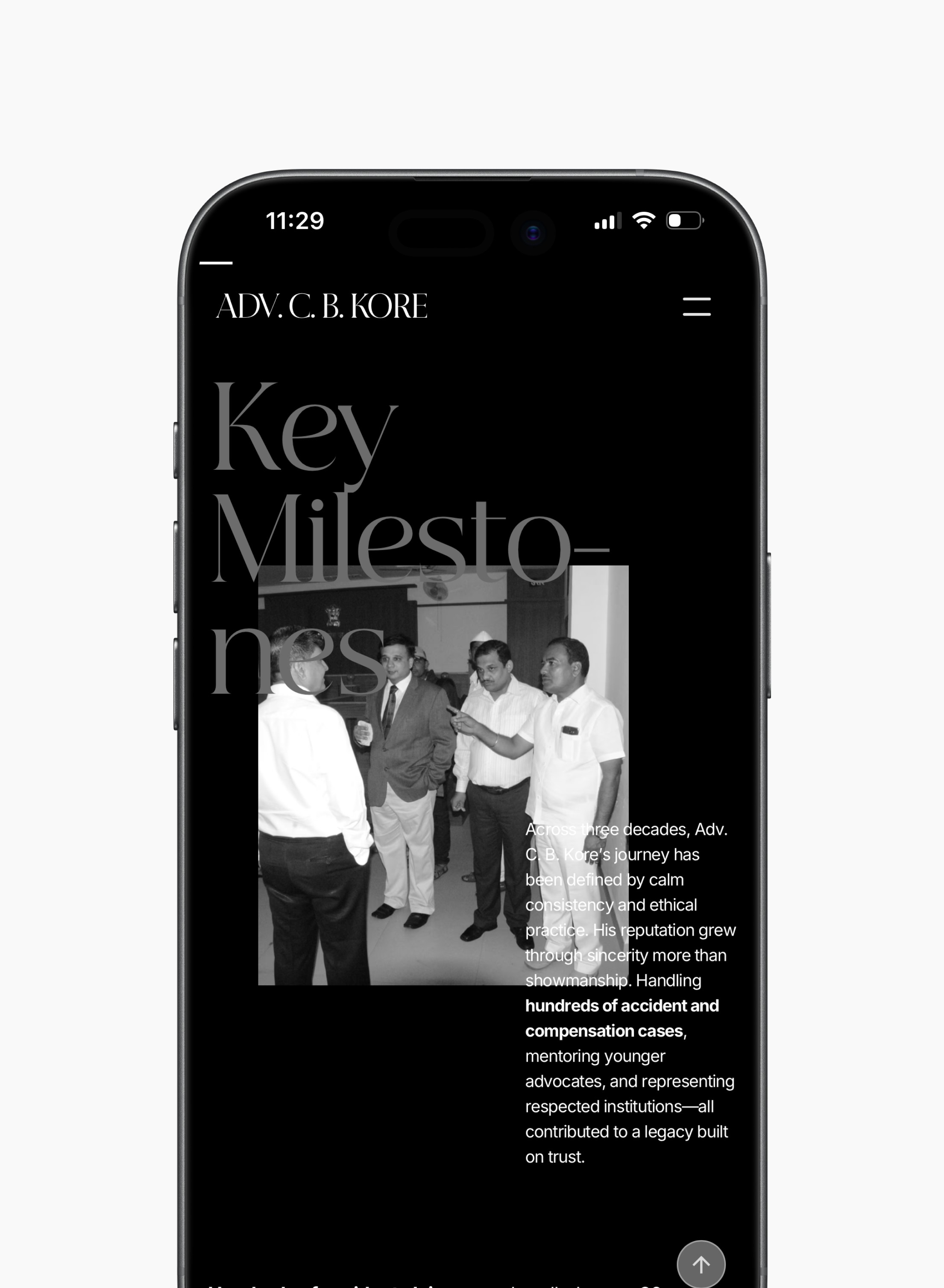 The website for Adv. C. B. Kore was designed to reflect three decades of legal practice defined by trust, consistency, and quiet strength. As one of India’s most respected motor accident and compensation lawyers, the digital experience needed to convey credibility without theatrics, authority without intimidation, and empathy without sentimentality.
